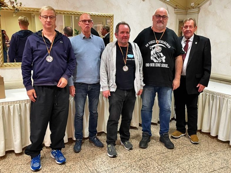 Den Pokal des LV-Meisters 2025 und die Goldmedaille errang das Quartett des SC 1979 Myhl. mit souverän erspielten 25.029 Punkten. Die Silbermedaille ging mit 23.702 Punkten an die Männer des Hobby SC Spay. Den 3. Platz und die Bronzemedaille erspielte sich mit 23.345 Punkten die Mannschaft von Herz Dame Radevormwald.